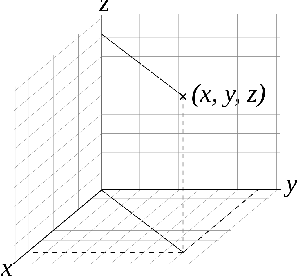 - 笛卡尔空间坐标系:笛卡尔坐标系是以三维空间中的原点为原点的坐标系,x 轴向垂直屏幕,y 轴向右,z 轴向上。